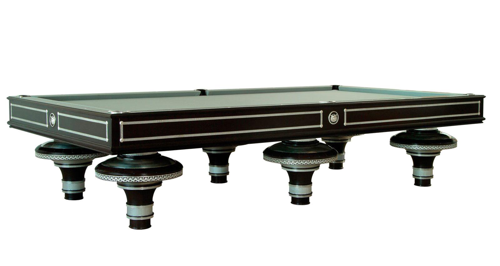 Черно-серебряный бильярдный стол "Византия" выполнен в духе самых последних модных тенденций в интерьере, представленных в том числе на последнем ежегодном крупнейшем мебельном салоне Salone Internazionale del Mobile-2007 (Милан).